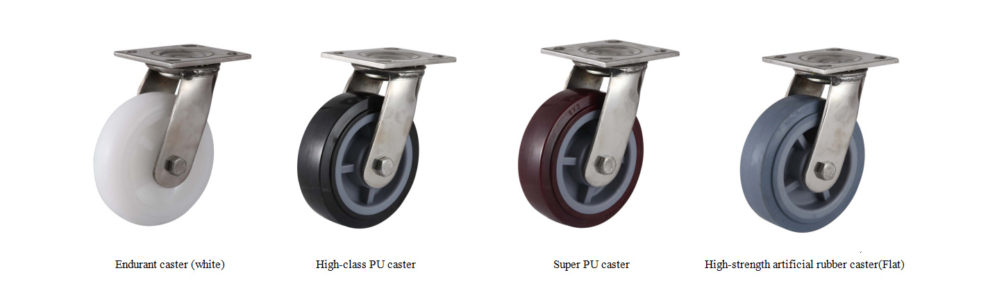 Heavy-duty casters usually use double-layer steel ball track, stamping forming, heat treatment. For the rotating plate of extra-heavy casters, generally flat ball bearings or flat needle roller bearings with greater force are used, and cone bearings are matched, which effectively improves the load capacity of heavy casters. For the special impact-resistant heavy-duty universal wheel, the rotating plate is made of die-forged steel, which is finished and formed, which effectively avoids the welding of the connecting plate bolts and improves the impact resistance of the caster with greater strength.